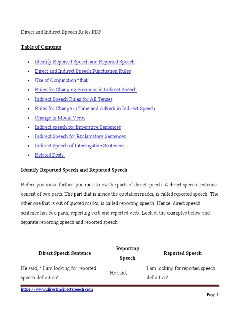 Direct and indirect speech, tips to solve, how to use, identify, rules to convert, solved examples both direct and indirect speech has two parts which are complete sentences in themselves imperative sentences. Thus, direct and indirect speech each report a person's statement in different ways.